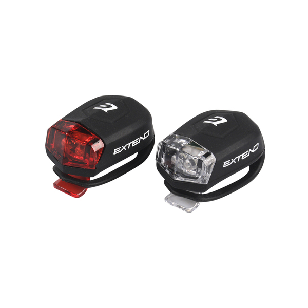 Sada malého predného a zadného bezpečnostného osvetlenia so silikónovým telom, určené pre široké spektrum outdoorového použitia (bicykel, kočík, turistika,…).